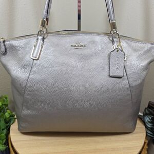 This Coach Kelsey F34494 satchel blends classic design with elevated metallic finish, making it a refined everyday bag. Its excellent condition and versatile size make it an effortless addition to your wardrobe.