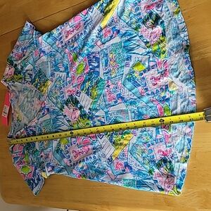 NWT Lilly Pulitzer Etta V-Neck Tee Top Multi Wish You Were Here, Size S
