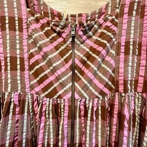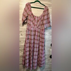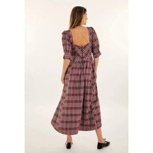 Free People Size Medium Tulie Plaid Midi Dress Boho Pink and brown plaid