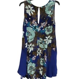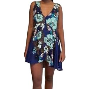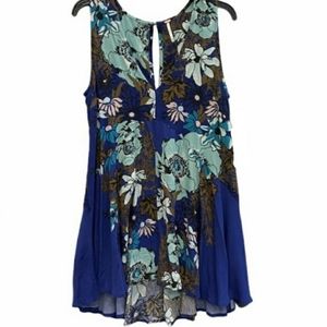 FREE PEOPLE Backyard Party Ocean Blue Tunic Dress EUC Backyard Print sz S