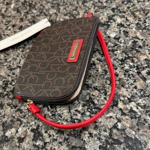 Calvin Klein Logo Wristlet in Brown and Red NWT