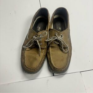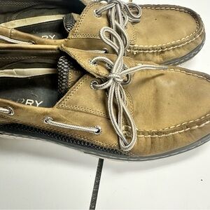 Sperry Men's Tan Leather Billfish 3-Eye boat shoes.