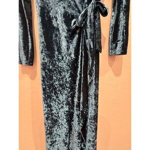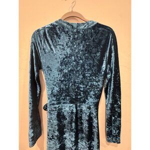 BCBG Maxazria Crushed Velvet Long Sleeve Wrap Dress Blue Size Medium