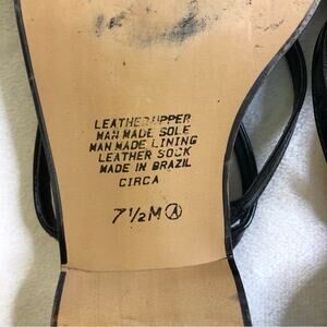 Enzo Angiolini black strappy slip on flat sandals. Straps on top. Low heel. Size 7.5 M. Excellent preowned condition. Minor wear. Made in Brazil. Box and / or dust bag are not included.