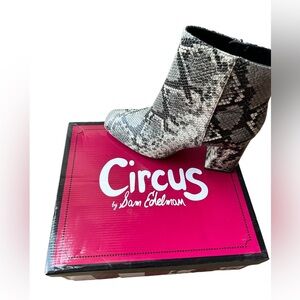 Chic snake print design. Stylish block heel. Perfect for any occasion.