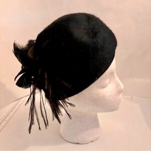 Vintage Hudson’s Bay women’s black feather hat fascinator headpiece