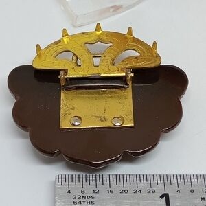 * vintage antique chocolate Bakelite brass leaves sash belt buckle clips