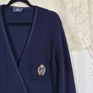 Vintage Saint James Wool Cardigan Sweater Knit Fisherman Navy Blue Sz Small Med