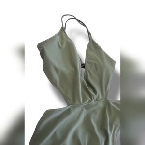 🌿Cupshe Women's Large Olive Green She's The Man Halter One Piece Swimsuit