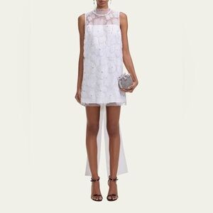 Self Portrait Embellished Tulle Satin Bow Mini Dress White Women’s Sz 2