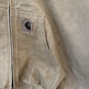 Vintage Carhartt Tan Hooded Jacket J06WET Quilted USA Union Made 2XL Year 1999