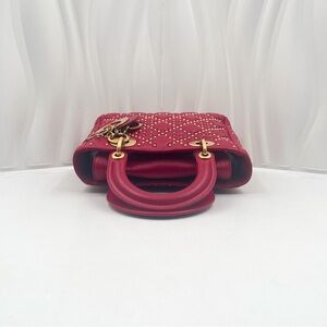 DIOR Lady Dior Medium Bag Red Lambskin with Gold Studs