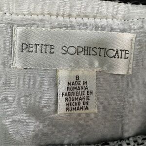 Petite Sophisticate pleated skirt with back zip. A-line silhouette with a classic “tweed” look gray fabric with some hints of black and white! Serious Y2K retro vibe but simple enough to wear to work today! Hits above the knee. Measurements in pics.