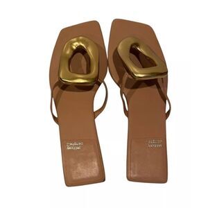 Stylish tan sandals with gold accents. Perfect for casual wear.