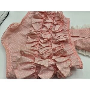 VTG Girls PINK GINGHAM RUFFLED Overall Romper Shorts Bib 12 mos 70s PLAID
