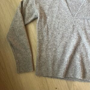 ** Evereve Women's Vneck cross long sleeve sweater Small Gray Beige