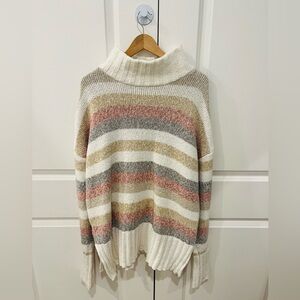 Eddie Bauer Women’s XL tunnel neck multi color stripped tunic length sweater
