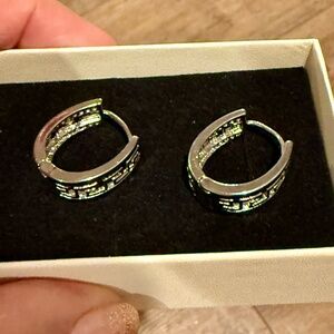 Inspired by timeless Greek design inspired by Halo & Grace, these 14K white gold hoop earrings feature an intricate Greek key motif framed by sparkling pavé-set stones for a look that’s both classic and bold. Elegant yet wearable, they bring a touch of old-world luxury to modern style. Diamond pave' design on the front and solid white gold polish in back - REVERSIBLE!
