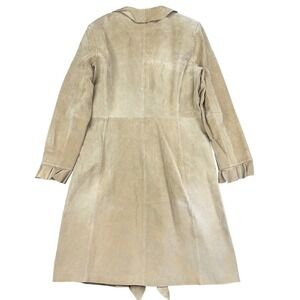 Vintage Leather Trench Coat size 14 Tan Renaissance Long Jacket Boston Proper