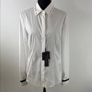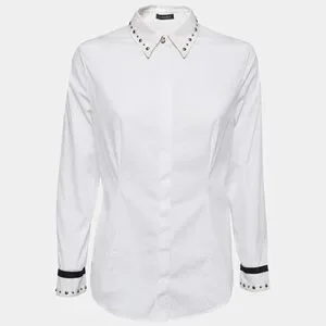 Versace White Button Down Shirt Black & Gold Stud Accents Size M EU 44 NEW COA
