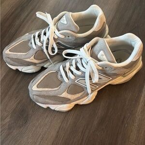 Grey New Balance 9060 trainers. Size 10.5 women and 9 men. No rips, stains, or flaws.