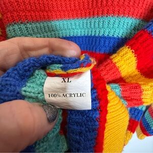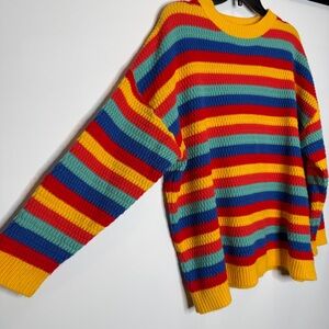 Fantaslook Sweater Chunky Knit Rainbow XL Striped Pullover Top Retro Y2K Bright
