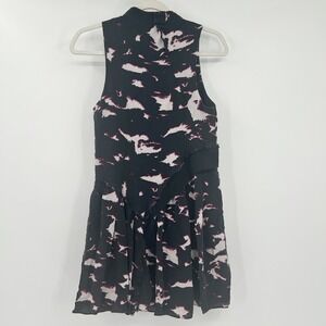Proenza Schouler Watercolor Abstract Printed Luxury Silk Mini Dress Size 0 Black