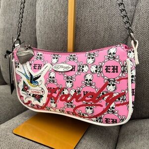 Ed Hardy Pink Skull Shoulder Bag • Y2K Tattoo Style • NWT