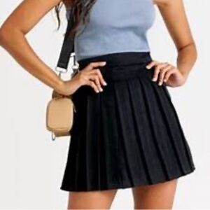 BCBGeneration Black Side Zip Pleated Skater Mini Skirt Retro 90s Preppy
