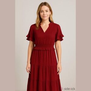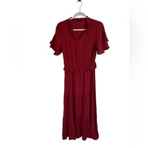 Pretty Garden Red Gauzy Lightweight Tiered Maxi Dress Bohemian Womens Size Large