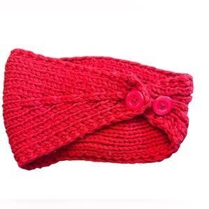 Stay warm and stylish with this vibrant red knit headband. Featuring a beautiful flower accent, it's perfect for adding a pop of color to your winter wardrobe.