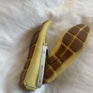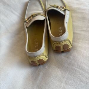 Prada yellow and white horsebit loafers 38