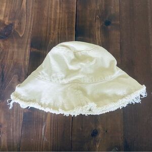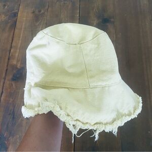 Yellow/cream frayed bucket hat