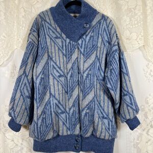 Vintage Wool Jacket Coat Blue Scandinavian Eclectic Size Medium Large