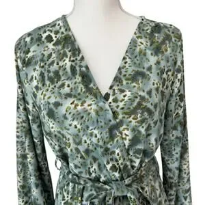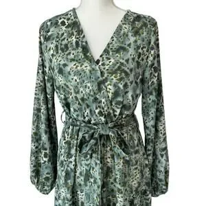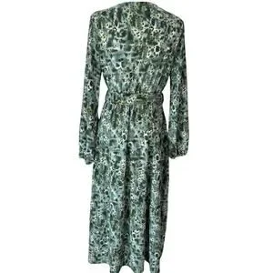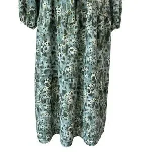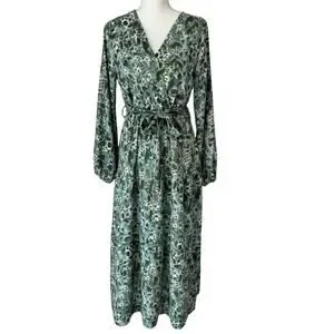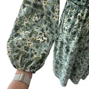 Maxi Dress Womens M Green Animal Print Flowy Country Cottage Boho Resort