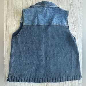 PBJ BLUES Denim & Woven Knit Snap Front Copper Sweater Vest Size XL