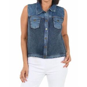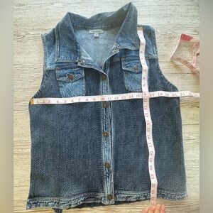 PBJ BLUES Denim & Woven Knit Snap Front Copper Sweater Vest Size XL Questions? Leave a comment below!