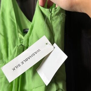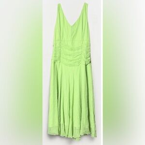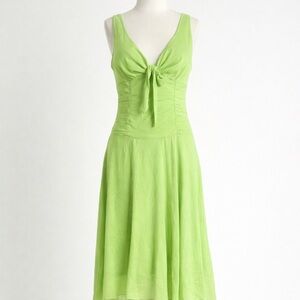 NWT Gorgeous vintage Y2K Fairy Jonathan Martin Studio sleeveless midi dress in a vibrant lime green. Made from 100% silk with a soft, flowy drape and a beautifully structured ruched bodice that flatters the waist and bust. Features a V-neckline with tie detail, an A-line fit & flare silhouette, and a fully lined interior for comfort. A classic early-2000s occasion dress perfect for spring events, garden parties, weddings, or retro Y2K styling.
