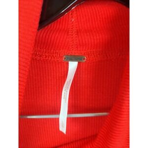 * Free People Womens Sweater L Red Oversized Turtleneck V Cut Out Party Holiday