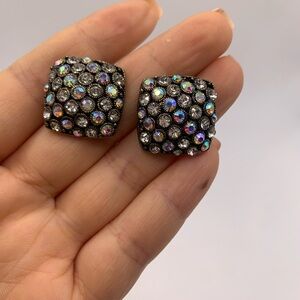 Vintage gold tone square rhinestone clip earrings