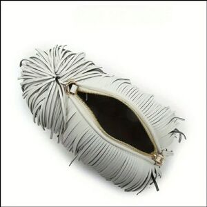 Kurious Kitty brings you this unique bag which features a playful dog with stylish white fringe and a yellow crossbody strap. New in packaging. Perfect.