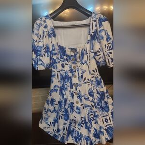 House of Harlow 1960 Dress Blue Floral Mini Coastal Cowgirl Linen Blend