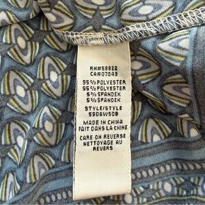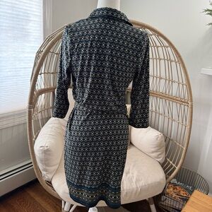 max studio dress geometric print shirt dress tie waist midi knee length workwear office casual chic polished modern boho travel dress blue green abstract print three quarter sleeve womens medium