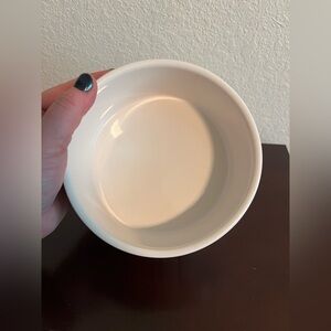 Stylish white ceramic bowl featuring the word 'GULP'. Perfect for serving or decor. Gently used.