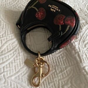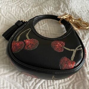 Authentic Coach adorable bag charm mini wallet. New without Tags in perfect condition. Leather with sparkly cherry design and cute tassel. No dust bag.