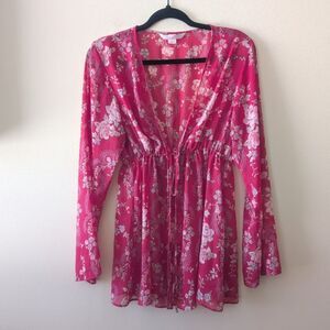 Victoria's Secret Sheer Top Women's Robe Long Sleeve Rose Floral Pink
