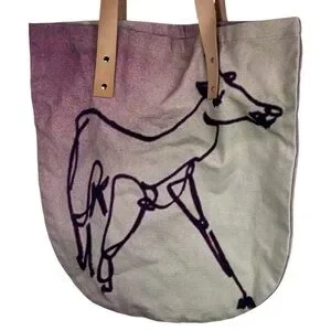 PAOM PRINT ALL OVER ME HAPPY COW CANVAS LEATHER HANDLE TOTE BAG