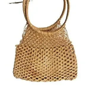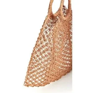 MANGO Shopper Bag Crochet Mesh Net Braided Jute Tote XL Handbag Brown Ltd Editio