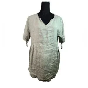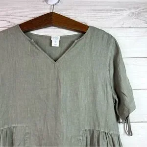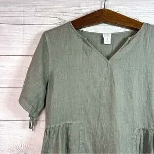 Sigrid Olsen Green Short Sleeve V-Neck Tunic Blouse Linen Lagenlook Size Small