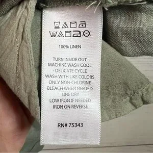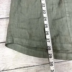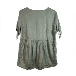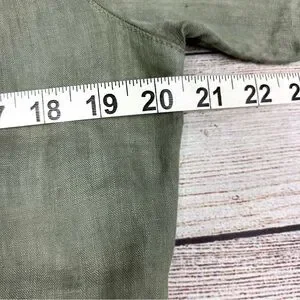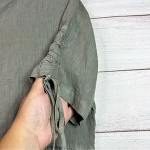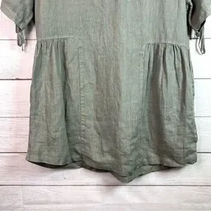 In great condition. Green tunic blouse. V-neck. Tie detail on sleeves. Pockets. 100% linen. Refer to pictures for measurements. From smoke-free/pet-free home.